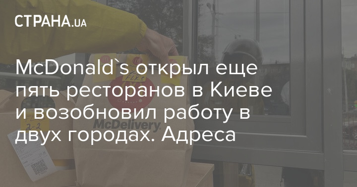 Также McDonald's в Киеве возобновил работу еще пять заведений по таким адресам: