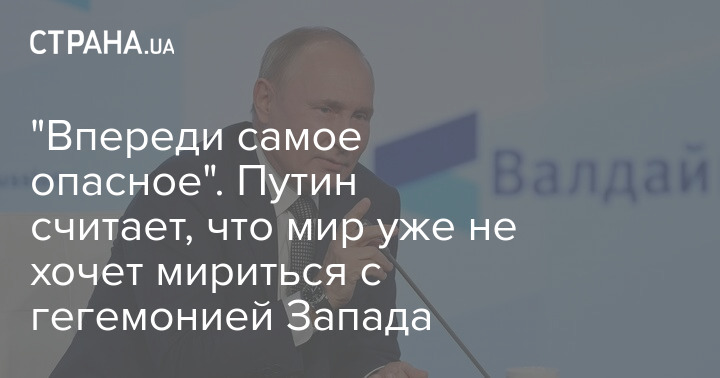 "Впереди самое опасное". Путин считает, что мир уже не хочет мириться с гегемонией Запада
