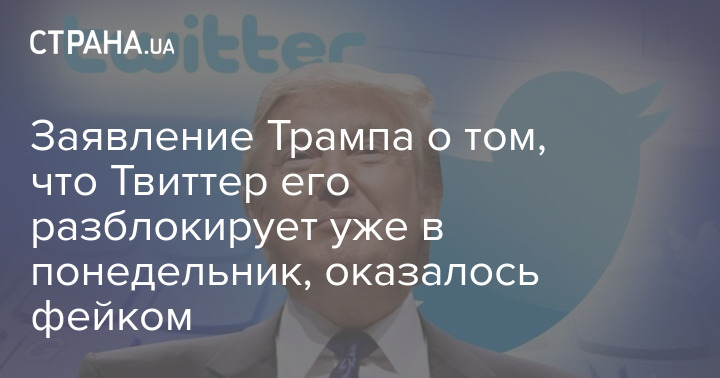Заявление экс-президента США Дональда Трампа о том, что Twitter его разблокирует уже в понедельник, после покупки соцсети Илоном Маском оказалось фейком.