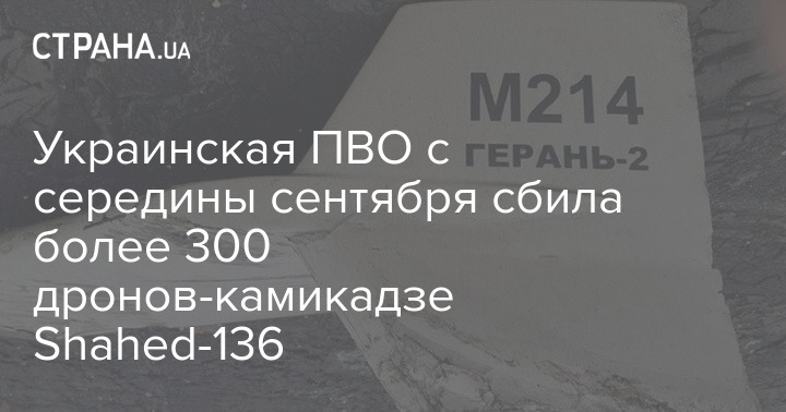 Украинская ПВО с середины сентября сбила более 300 дронов-камикадзе Shahed-136
