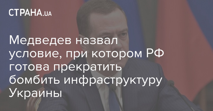 Зампред Совбеза РФ Дмитрий Медведев намекнул, что удары по энергосистеме Украины будут совершаться до тех пор, пока Киев не признает "правомерность требований России в рамках СВО и её результаты, отражённые в нашей Конституции".