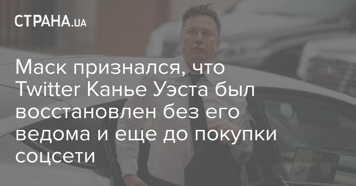 Илон Маск сообщил, что аккаунт американского рэпера Канье Уэста в Twitter был восстановлен без его ведома и еще до завершения сделки по покупке компании