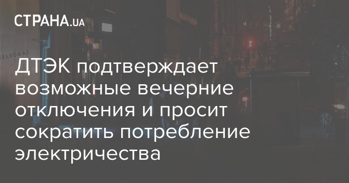 ДТЭК подтверждает возможные вечерние отключения и просит сократить потребление электричества