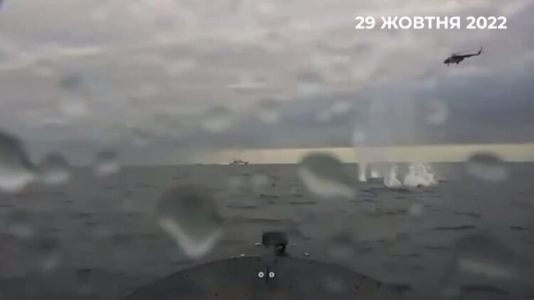 Атака водного дрона под огнем вертолета. Появилось новое видео удара по российским кораблям в Севастополе