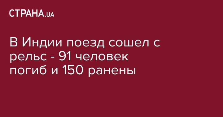 В результате крушения поезда в Индии количество погибших, по последним данным, достигло 91 человека, более 150 пострадали. Об этом сообщает NDTV.