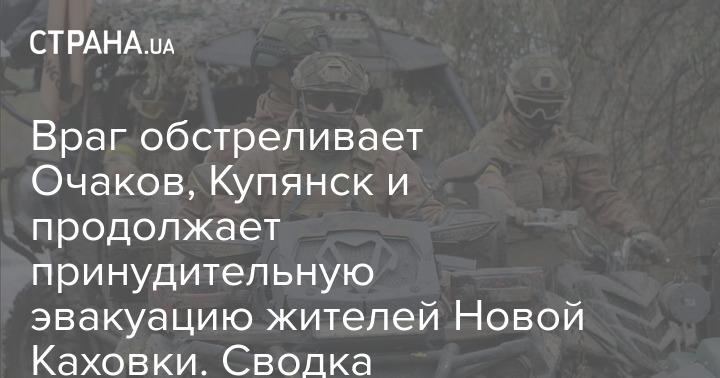 Враг обстреливает Очаков, Купянск и продолжает принудительную эвакуацию жителей Новой Каховки. Сводка Генштаба