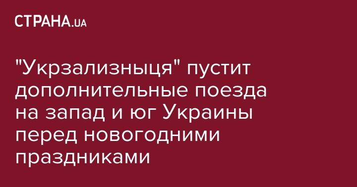 "Укрзализныця" пустит дополнительные поезда на запад и юг Украины перед новогодними праздниками
