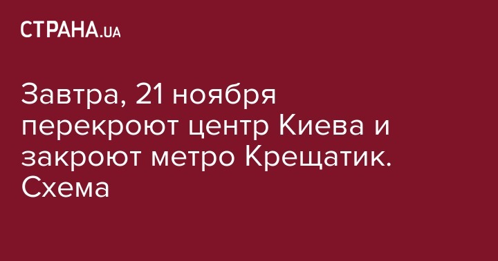 Так, с 06:00 утра 21 ноября 2016 до окончания мероприятий будет перекрыто движение транспортных средств по ул. Крещатик (на отрезке от ул. Б. Хмельницкого до д. № 3 на ул. Крещатик).