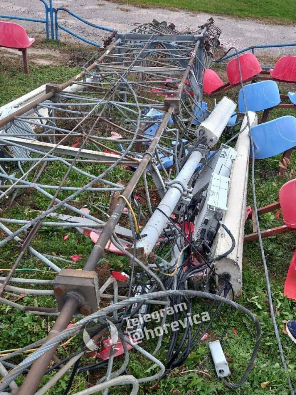 10:07 Последствия прилёта в Голой Пристани (захваченная россиянами часть Херсонской области на левом берегу Днепра).