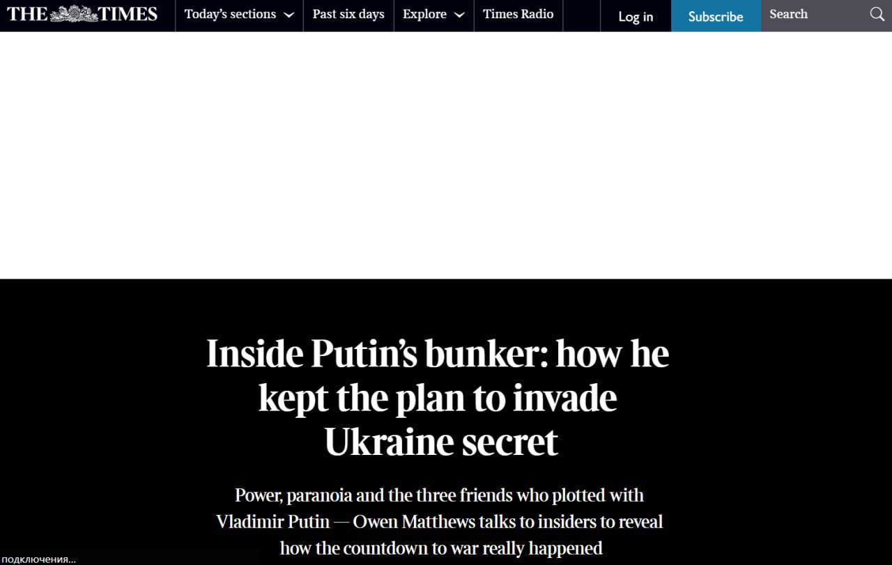 00.20 Британская The Times публикует подробности о том, как Россия готовилась к войне в Украине.