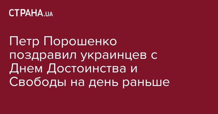 Президент Украины Петр Порошенко в своем микроблоге Twitter поздравил украинцев с Днем Достоинства и Свободы.