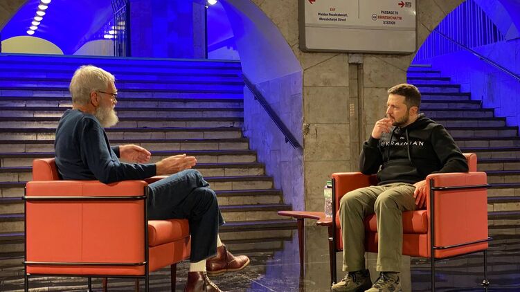 На этот раз Зеленский общается с американским ведущим Дэвилом Леттерманом.