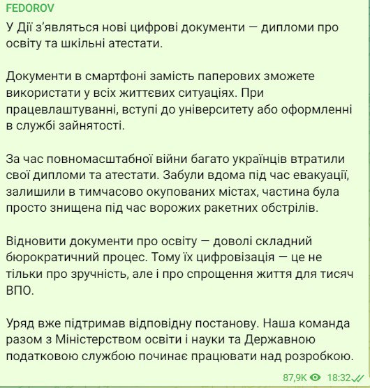 В Минцифры отмечают, что это особенно актуально, поскольку многие украинцы за время полномасштабного вторжения утеряли дипломы и аттестаты или они остались дома после эвакуации.