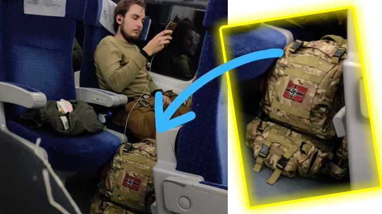 "Украинский солдат-еврей вчера ехал в поезде в Киев и увидел этого украинского солдата с рюкзаком, на котором спереди красовалась нацистская свастика. Надеюсь, это не популярный тренд", - написал журналист, отметив под постом президента Владимира Зеленского и МИД Украины.
