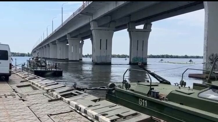 Понтонная переправа через Днепр перестанет обслуживать мирное население. Скриншот из видео