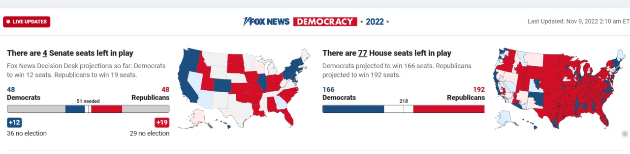 Напомним, по экзитполам республиканцы получают большинство в обеих палатах Конгресса.
