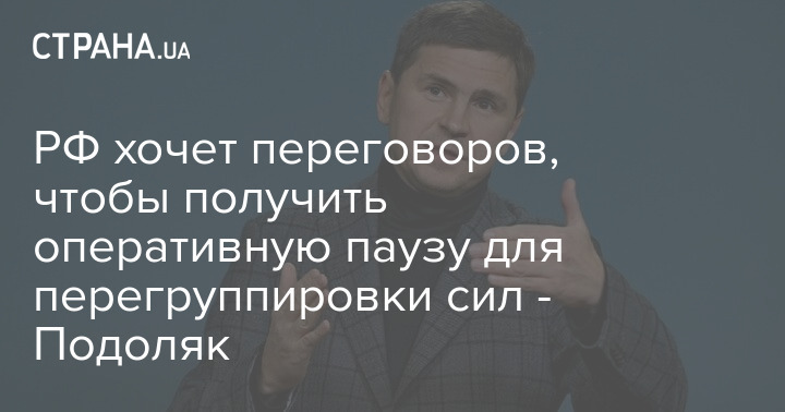 Россия хочет переговоров, чтобы получить оперативную паузу для перегруппировки сил. Такое мнение высказал советник главы Офиса президента Михаил Подоляк в интервью "Медузе"