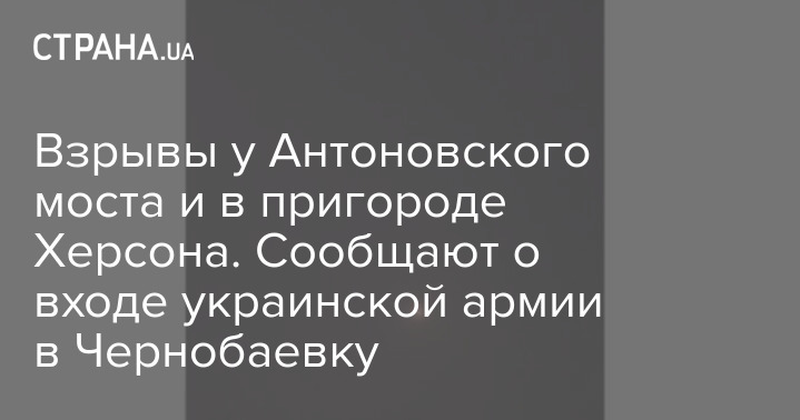 Взрывы у Антоновского моста и в пригороде Херсона. Сообщают о входе украинской армии в Чернобаевку