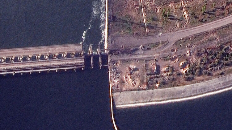 На снимках видно, что вода вытекает из трех шлюзовых ворот на плотине, где расположен крупный гидроэнергетический объект. Неясно, как было вызвано последнее повреждение, близкое к западному берегу. Местные телеграм-каналы в четверг вечером сообщили о звуках взрывов вокруг плотины.