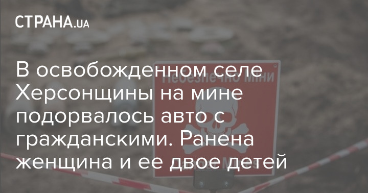При выезде из села Мыловое на правом берегу Херсонской области на мине подорвался автомобиль с гражданскими. Пострадали женщина и ее двое детей.