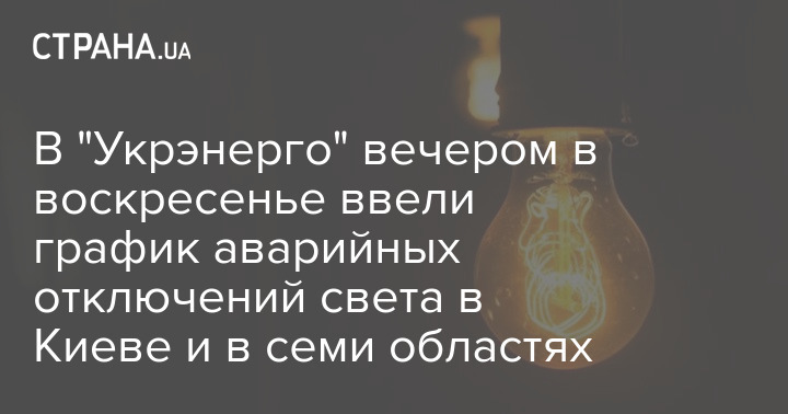 Компания "Укрэнерго" сообщает о том, что на остаток воскресного дня вводятся графики аварийных отключений в Киеве, Киевской, Черкасской, Черниговской, Житомирской, Харьковской, Полтавской и Сумской областях.