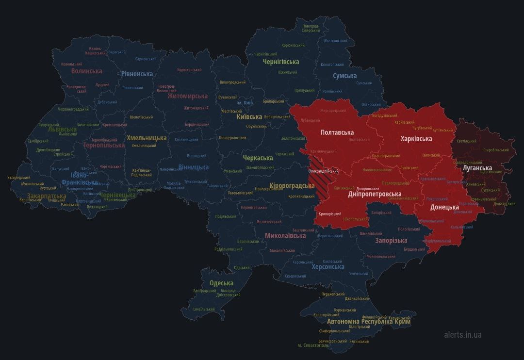 08.33 Воздушная тревога звучит в ряде областей Украины.