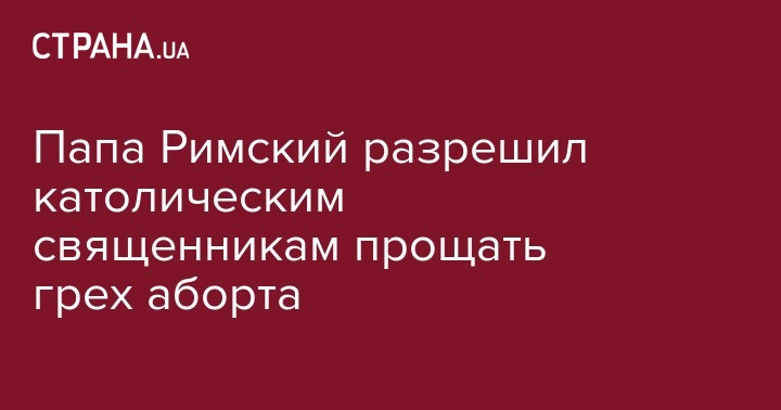 Папа Римский Франциск разрешил всем священникам Римско-католической церкви   не только в Рамках Юбилейного года милосердия (завершается в ноябре 2016) отпускать женщинам грех аборта, передает Reuters.