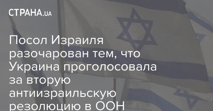 Израиль разочарован тем, что 98 стран и в том числе Украина, проголосовали за антиизраильскую резолюцию в ООН.