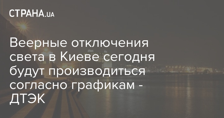 ДТЭК сообщает, что веерные отключения электроснабжения в Киеве сегодня будут производиться согласно графикам. Обещают, что сделают все, чтобы отключения длились не более 4 часов для каждой группы потребителей.