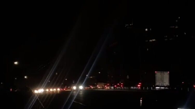 На многих улицах видны только автомобильные огни. Остальной город погрузился во тьму.