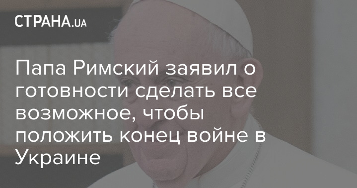 Папа Римский заявил, что готов сделать все возможное, чтобы выступить посредником и положить конец войне в Украине.