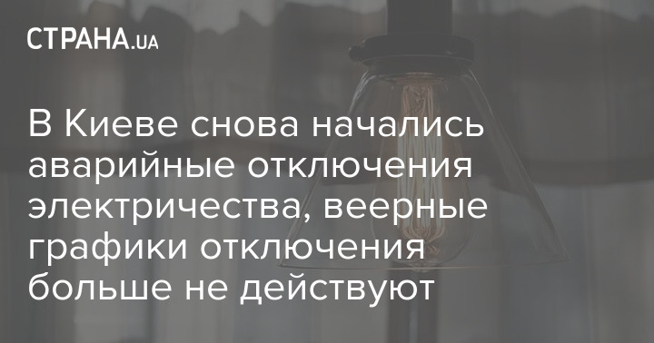 В Киеве вновь начались аварийные отключения света. Прежние графики отключений не действуют, сообщает компания ДТЭК.