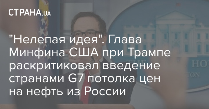 "Нелепая идея". Глава Минфина США при Трампе раскритиковал введение странами G7 потолка цен на нефть из России