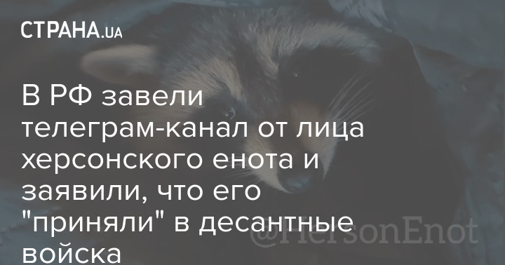 В канале утверждается, что енота "приняли" в десантные войска, и публикуются видео военных РФ с животным.