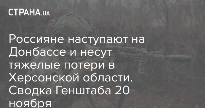 В Генеральном штабе Вооруженных сил Украины опубликовали оперативную сводку с фронта по состоянию на 18:00 20 ноября. Сообщается, что украинские войска отбили атаки врага под Белогоровкой и Бахмутом, а противник понес потери в Херсонской области.