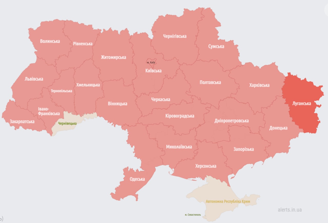 Россия наносит удары по нескольким юго-восточным областям Украины. По всей Украине, кроме Черновицкой области, объявлена воздушная тревога.