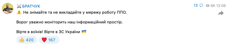 Также Ким предупреждал об угрозе ракетных ударов по Одессе, Николаеву и Херсону после обеда, поскольку в небо поднялись девять российских бомбардировщиков Ту-95.