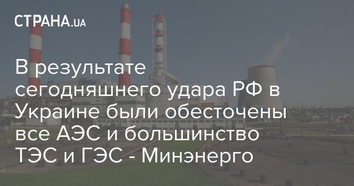 В результате сегодняшнего удара РФ в Украине были обесточены все АЭС и большинство ТЭС и ГЭС - Минэнерго