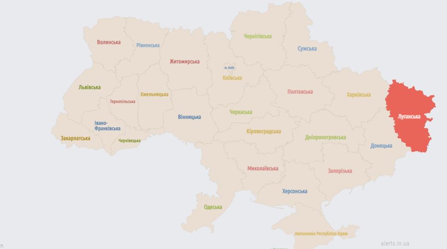 06.00 Карта тревог на сейчас. Сирены только для Луганской области.