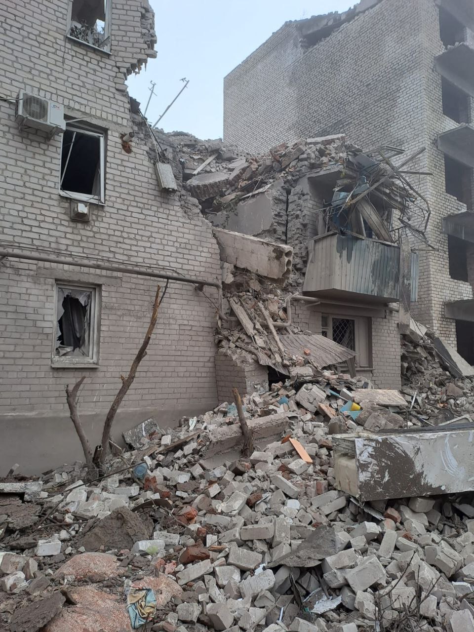 Три человека ранены. Разрушена многоэтажка и склад, сообщил губернатор Павел Кириленко.