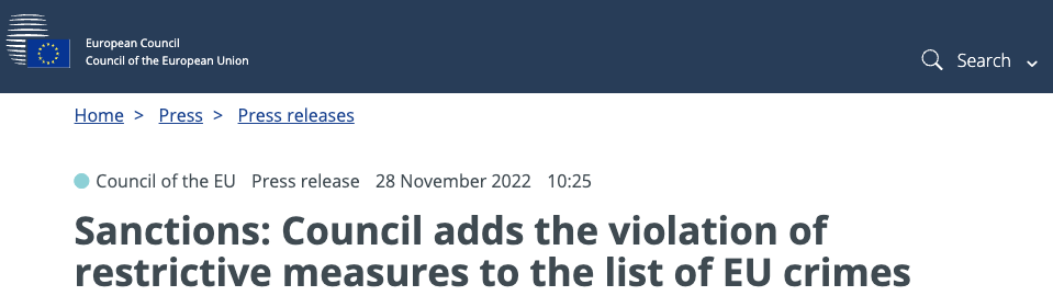 Совет ЕС утвердил решение о включение обхода санкций в список уголовных преступлений. СМИ пишут, что это решение открывает путь к возможной конфискации активов российского бизнеса.