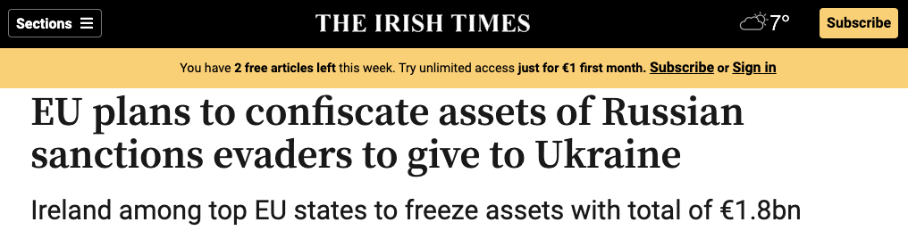 Согласно данным, предоставленным The Irish Times, активы принадлежат 1239 подсанкционным лицам и 116 подсанкционным компаниям, включенным в санкционный список ЕС из-за их связи с вторжением России в Украину.