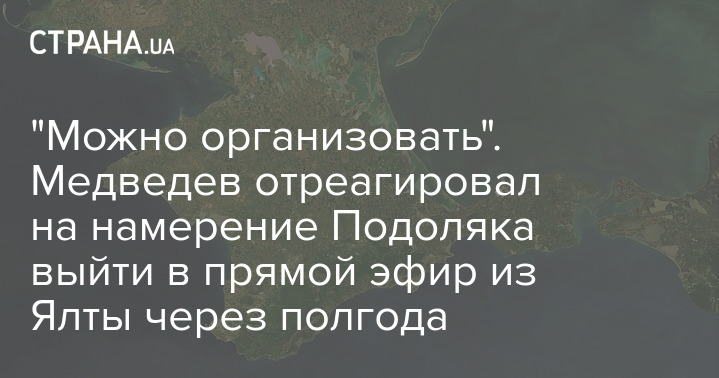 Зампред Совбеза РФ Дмитрий Медведев в своем Твиттере отреагировал на намерение советника Офиса президента Михаила Подоляка выйти в прямой эфир из Крыма через полгода.