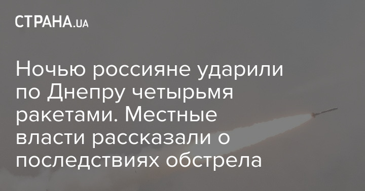 После ночного удара по Днепру погибших и раненых нет. Россияне били по городу четырьмя ракетами. Есть серьезные разрушения, но пожар уже потушен.