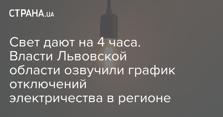 Свет дают на 4 часа. Власти Львовской области озвучили график отключений электричества в регионе