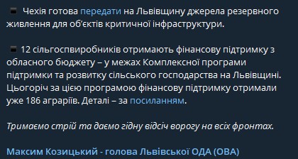 Об этом сообщил глава Львовской ОВА Максим Козицкий в своем телеграм-канале.
