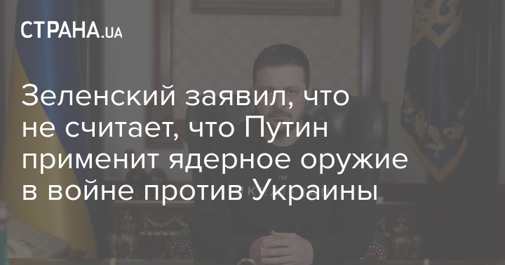 Президент Украины Владимир Зеленский считает, что президент РФ Владимир Путин не станет применять ядерное оружие в войне с Украиной.