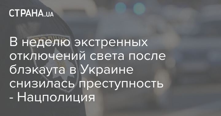 За неделю, во время которой были аварийные отключения электроэнергии после блэкаута (с 23 по 30 ноября), в Украине снизился уровень преступности.