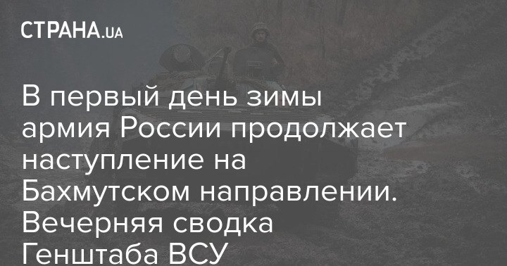 В первый день зимы армия России продолжает наступление на Бахмутском направлении. Вечерняя сводка Генштаба ВСУ