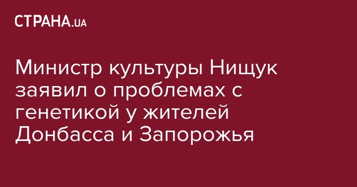 Министр культуры Нищук заявил о проблемах с генетикой у жителей Донбасса и Запорожья
